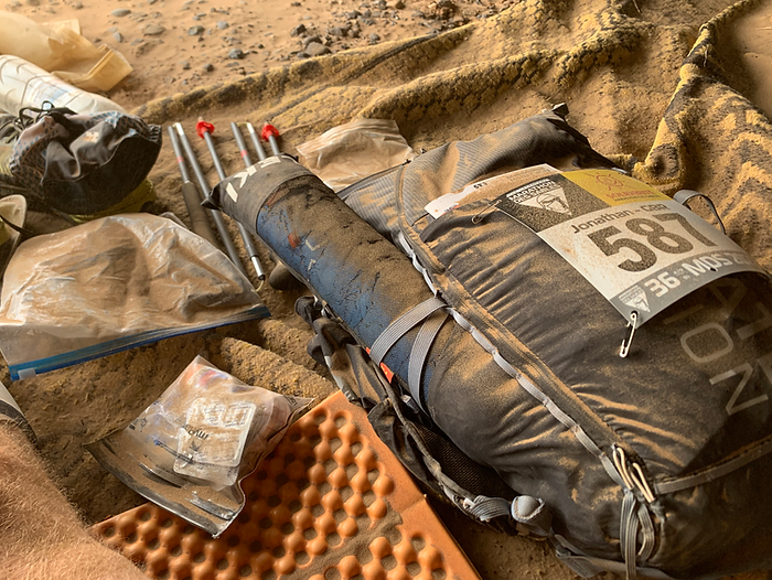 I decanted all of my meals, except breakfast day 1 and the long stage meal (long stage meal would be re-hydrated in the bag on the back of my pack in the sun) into freezer bags, cutting out the nutritional Information for the race organisers and saved about 170g of weight. When the time came to eat them I would use a bowl made by cutting a bottle in half.