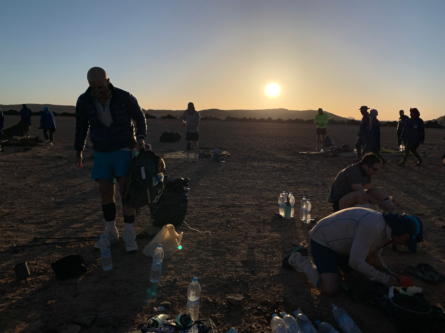 As we approached the cutoff time for the stage on the evening of the rest day, the staff alerted the bivouac that the last competitors were approaching the line. It was an incredible sight as the entire bivouac turned out to the finish line to cheer Abdelkarim El Hayani, who was runner the whole event barefoot!